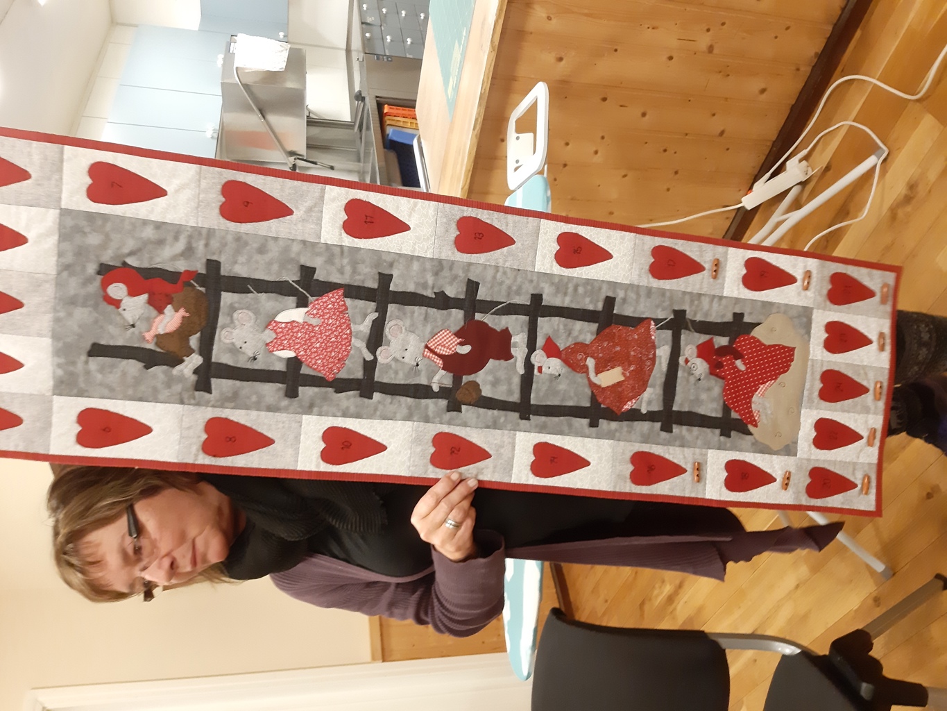 Adventskalender sydd av Anne Karin. "Stigen" til Anneka, men denne gangen med mus! Også Anneka,s.