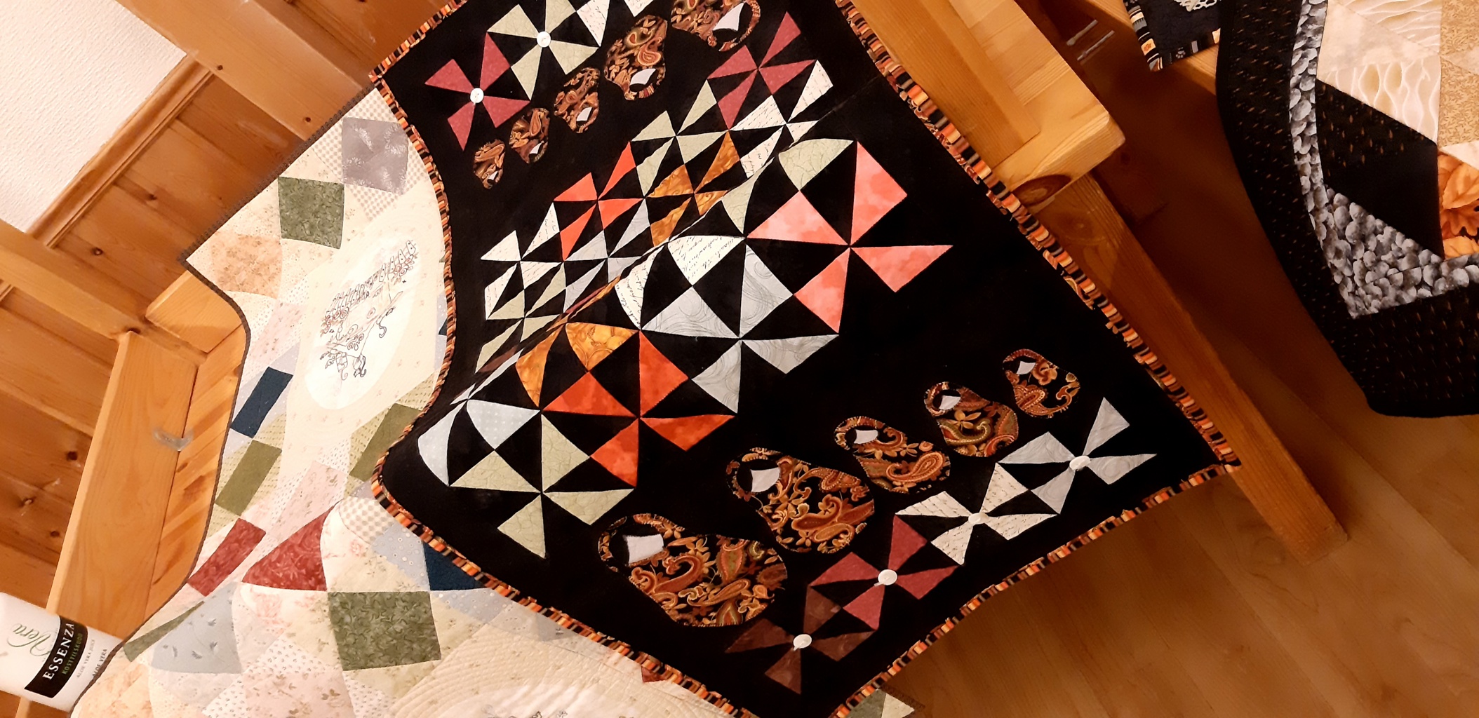 vis og fortell våren 2024 Ivrige sydamerflere ivrigemange muligheter med trekanterMaren laget puter og kuverbrikker i BagelloMarits bagelloteppeIngunn viste frem sitt første lappeteknikk sytøy fra ungdsomsskolen.Marit har sydd bryllupsgave